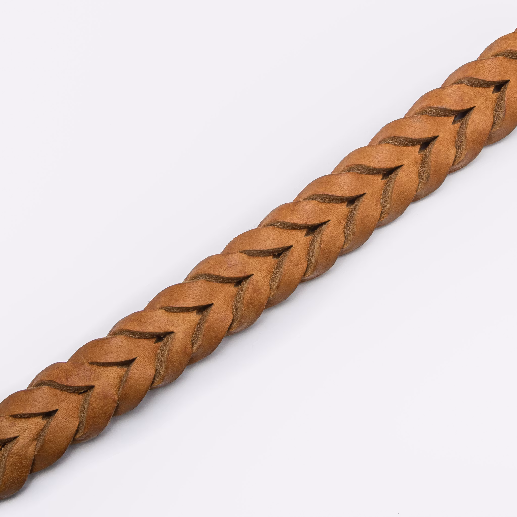 Handgjort halsband i vackert flätat läder. Det oljade lädret är mjukt men tåligt. Spänne och detaljer i rostfritt stål.