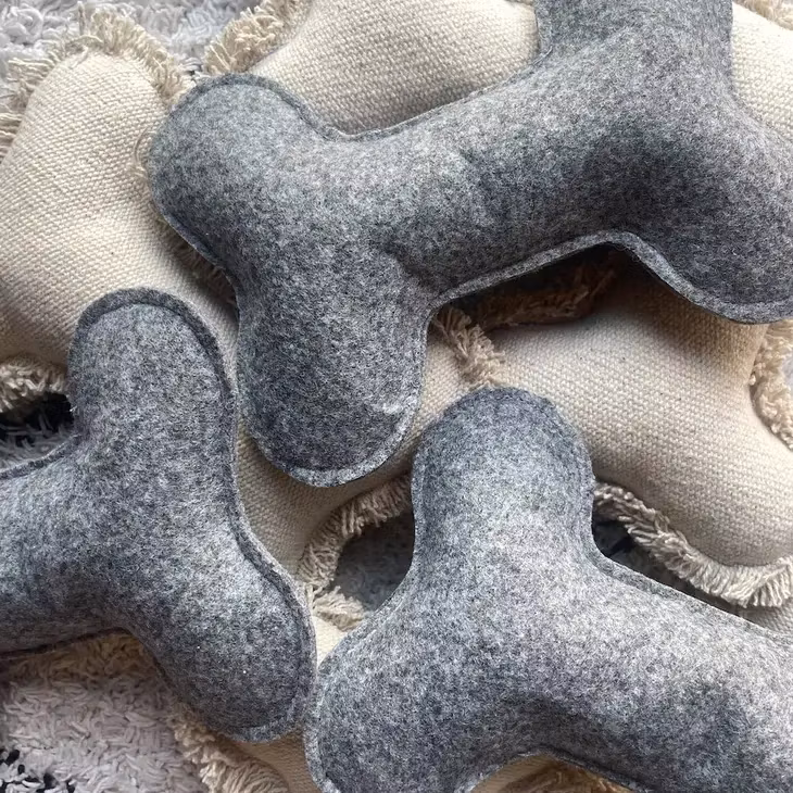 Dessa snygga leksaksben är tillverkade av restmaterial från tillverkningen av deras hundsängar. Därmed är de även väldigt slitstarka och tåliga då de är sydda av hållbara möbeltyger. Fyllnadsmaterialet består till 100% av återvunnet material från PET flaskor.